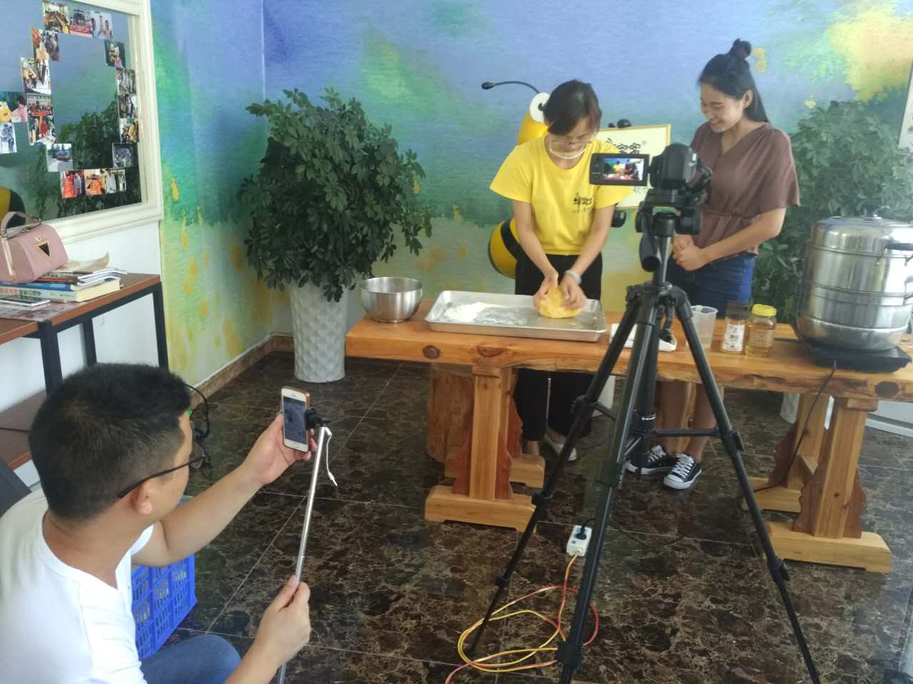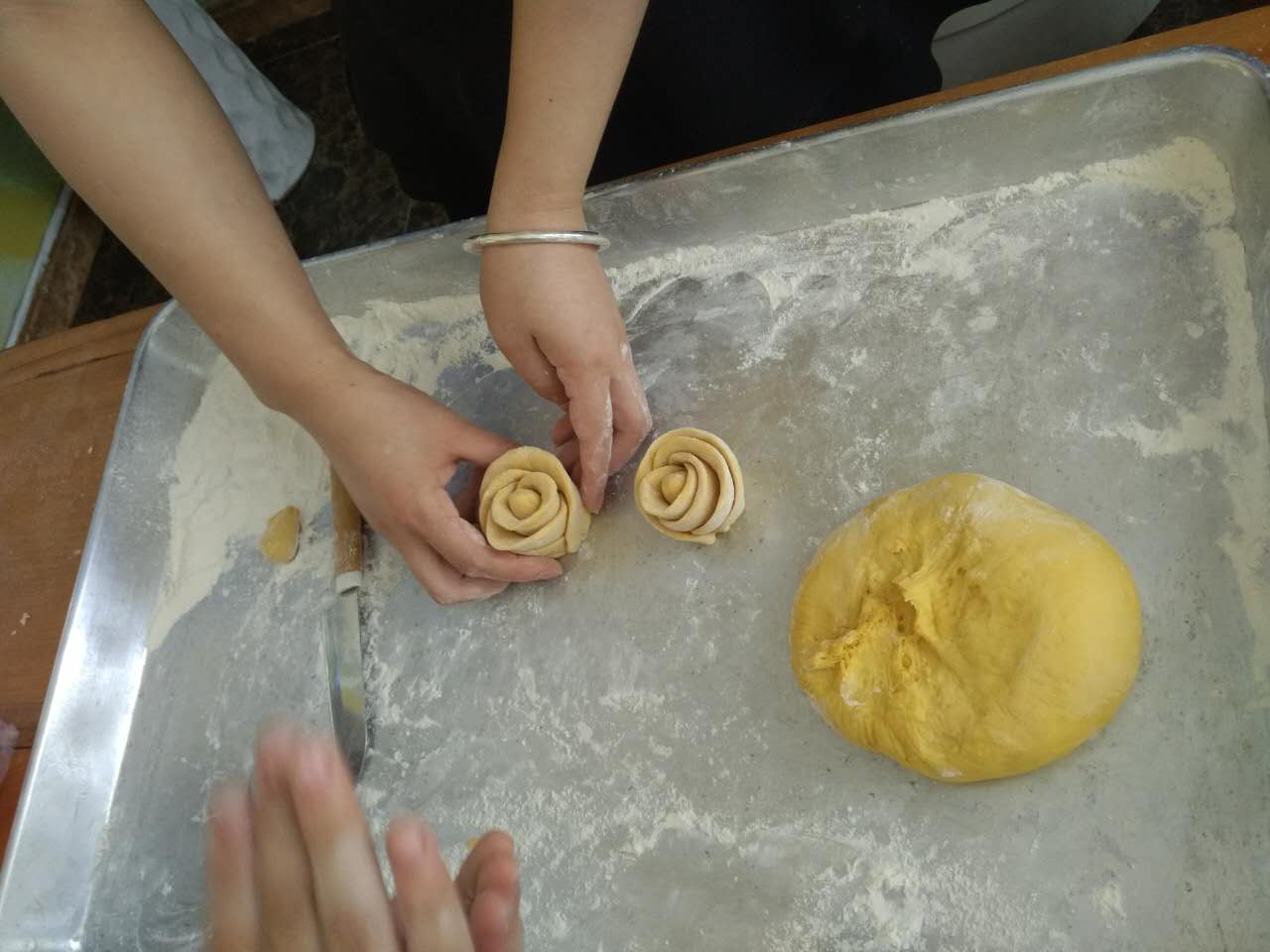 來到蜜蜂園,怎能少了特色DIY--花粉饅頭。看來大伙都是下得了廚房的能手。