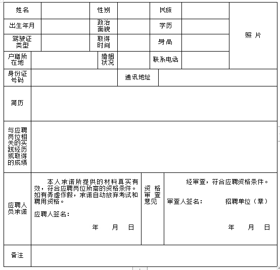 應(yīng)聘單位: 應(yīng)聘崗位: 報名序號: