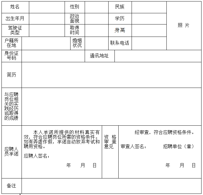 應聘單位: 應聘崗位: 報名序號: