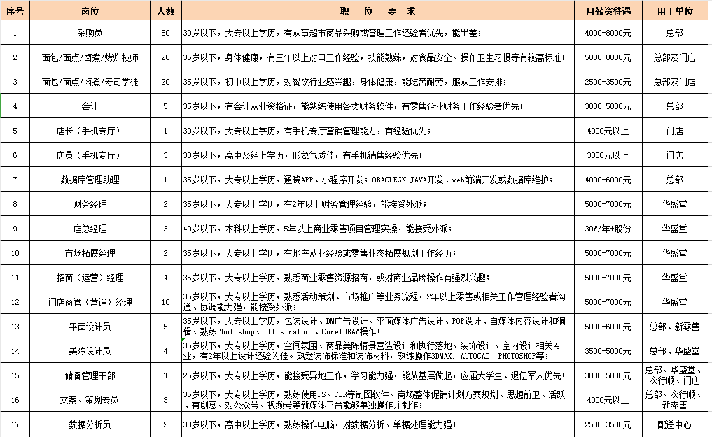 現(xiàn)因公司業(yè)務(wù)發(fā)展需要,面向社會招聘如下崗位: