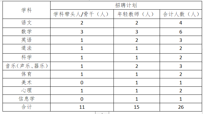 優(yōu)秀教師和行政崗位招聘計劃