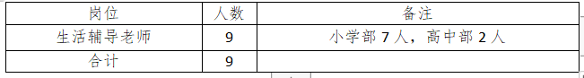 3、生活指導老師年齡45周歲以下,特別優(yōu)秀的可適當放寬年齡,其他行政、教輔崗位人員年齡35周歲以下。