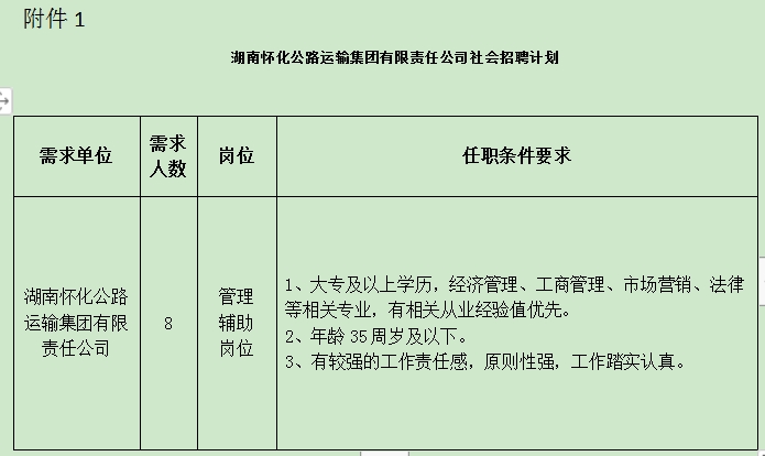 附件1:湖南懷化公路運(yùn)輸集團(tuán)有限責(zé)任公司2024年社會(huì)招聘計(jì)劃