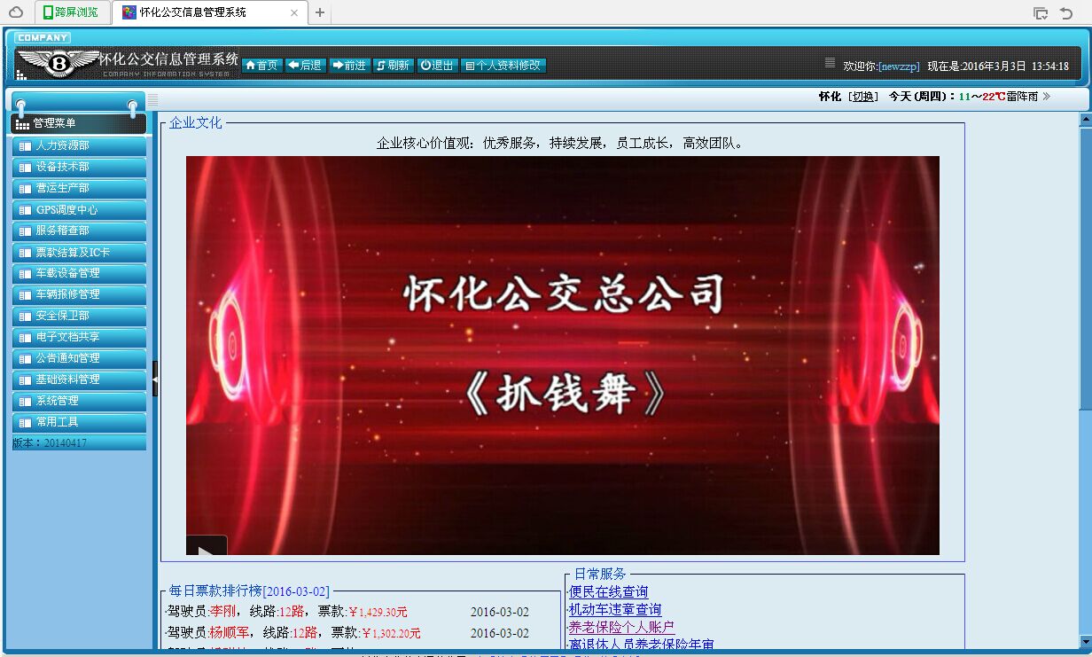 本系統(tǒng)包含了幾個重要部門的業(yè)務(wù)管理,包括:人力資源部、設(shè)備技術(shù)部、營運(yùn)生產(chǎn)部、服務(wù)稽查部、票款結(jié)算中心、安全保衛(wèi)部等。 |