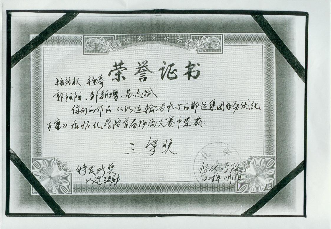 根據(jù)邯運(yùn)集團(tuán)的案例資料,與團(tuán)隊(duì)成員合作,分析其內(nèi)外部環(huán)境,制定解決方案,榮獲懷化學(xué)院首屆物流大賽三等獎(jiǎng)。 |